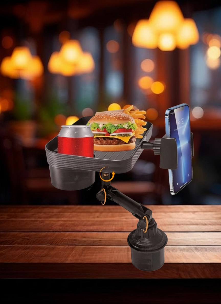 حامل أكواب للسيارة 3 في 1، صينية طعام مع حامل جوال، صينية طعام وشراب تلقائية دوارة 360°، منظم حامل أكواب للسيارة قابل للتعديل، ملحقات سيارة محمولة للوجبات الخفيفة والمشروبات للسفر من دينكس، DX1285